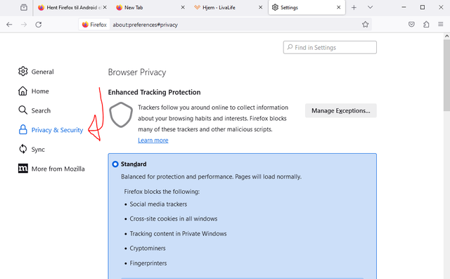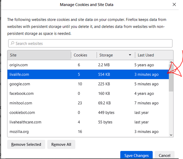 Find the Livalife.com entry on the list and select. Then click save changes.