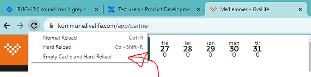 Then it opens a menu. Please click “Empty Cache and Hard Reload”